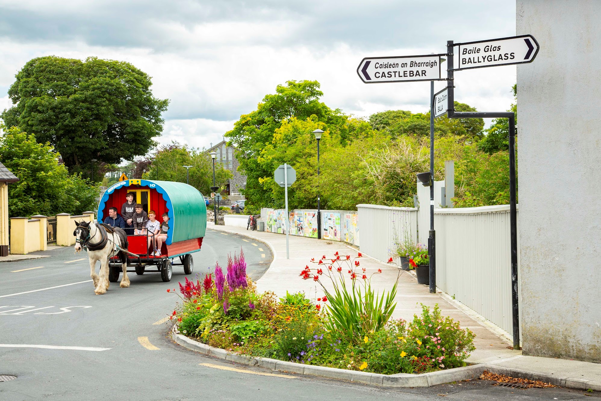 Belcarra (Baile na Cora) village is located in County Mayo in the West of Ireland. The name means ‘the village of the weir’ or river-crossing. It is referred to on some old maps as Ballycarra but the name was changed by deed poll in 1970 to Belcarra. It is 10 kilometres (6.2 miles) south-east of the county town of Castlebar.