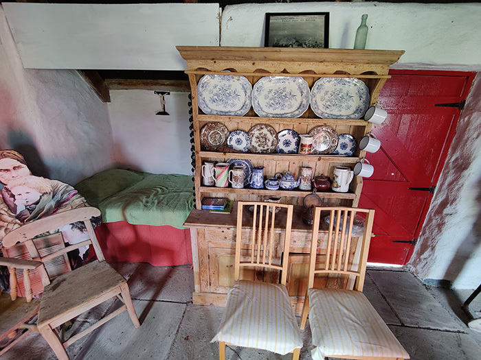 This cottage has now been restored as a heritage centre and has been refurbished to how it would have looked before the eviction. There are life sized cut outs in the cottage produced by local artist, Bridie Geraghty, and it is furnished with typical household implements of the era.