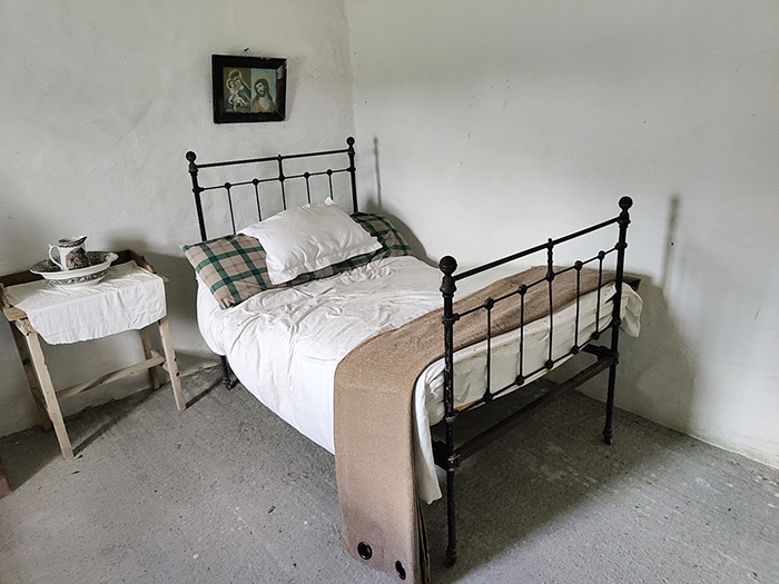 This cottage has now been restored as a heritage centre and has been refurbished to how it would have looked before the eviction. There are life sized cut outs in the cottage produced by local artist, Bridie Geraghty, and it is furnished with typical household implements of the era.